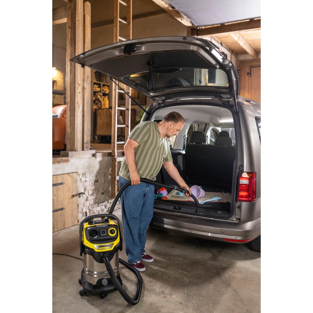 Хозяйственный пылесос Kärcher WD 7 Control P S 30/6/35/T оснащен интеллектуальной системой контроля фильтра FILT!elligence™. Светодиодные индикаторы уведомляют о необходимости очистки или замены фильтра и мешка.