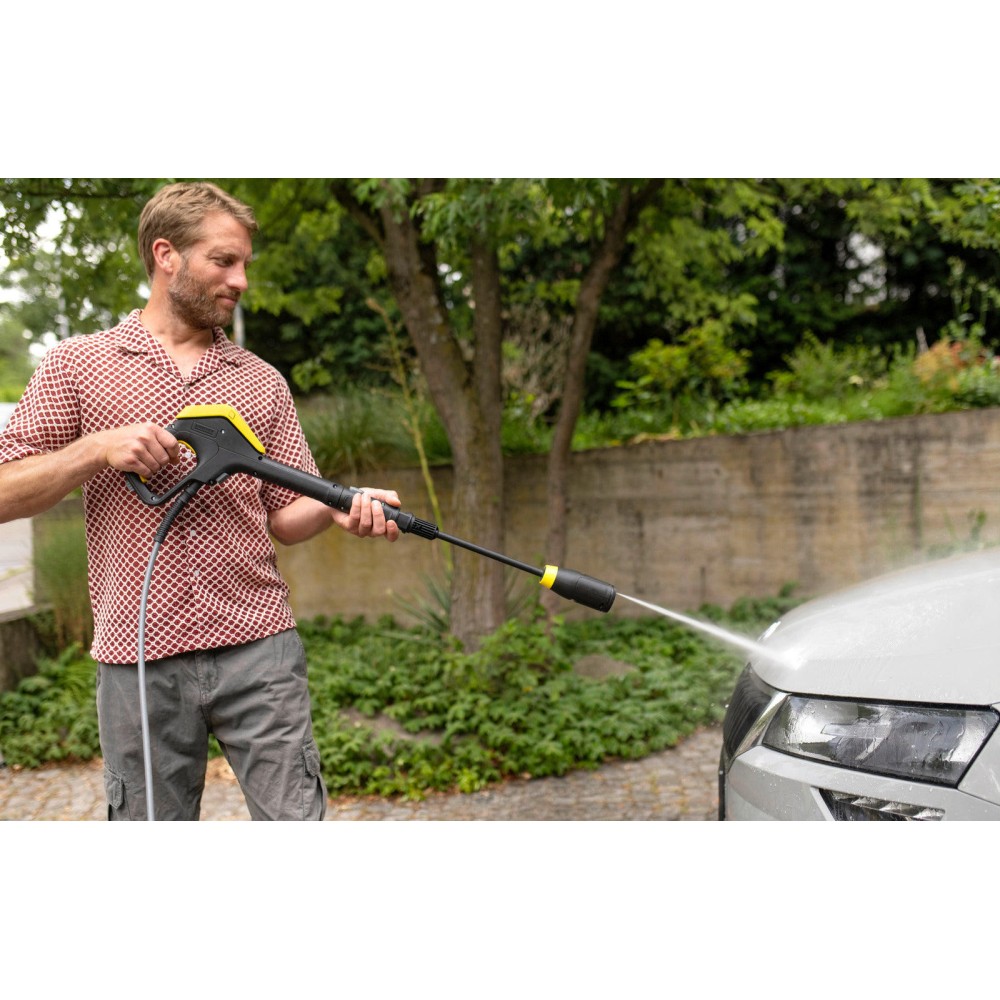 Система Quick Connect позволяет быстро подключать шланг. Многофункциональная насадка 4-в-1 обеспечивает различные типы струи без необходимости замены трубки.